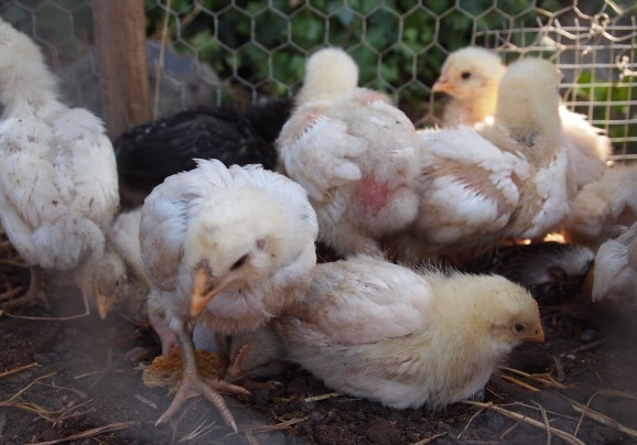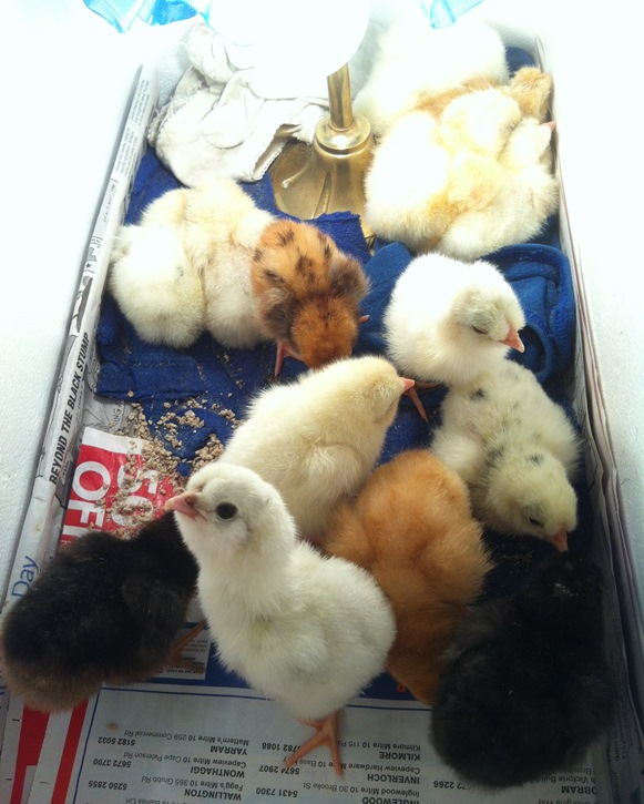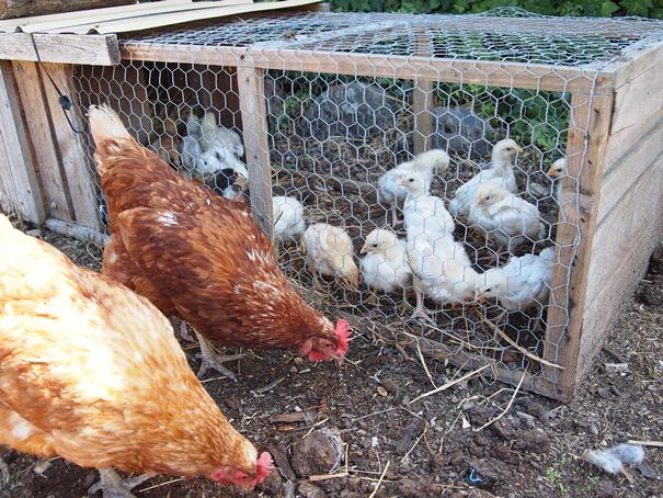 As they grow they have been moved into larger accommodation…from a polystyrene hot box, to a cardboard brooder box, then to a rabbit hutch to acclimatise them to outside conditions and play in the dirt for natural scratching, dust-bathing and foraging….