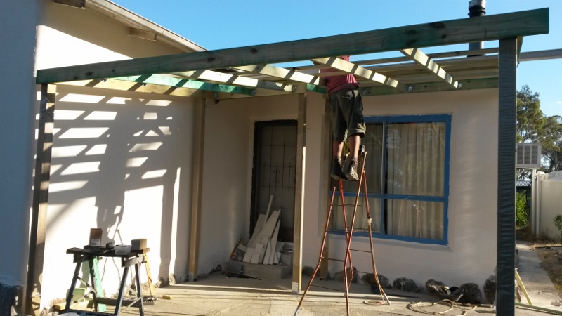 Stace worked hard in the days leading up to Christmas to complete a patio out the front of the house. In just 3 days, Stace finished the concreting, erected the wooden supports and on Christmas morning, added the laserlight roofing…just in time for us to enjoy our lunch in the shaded outdoors!