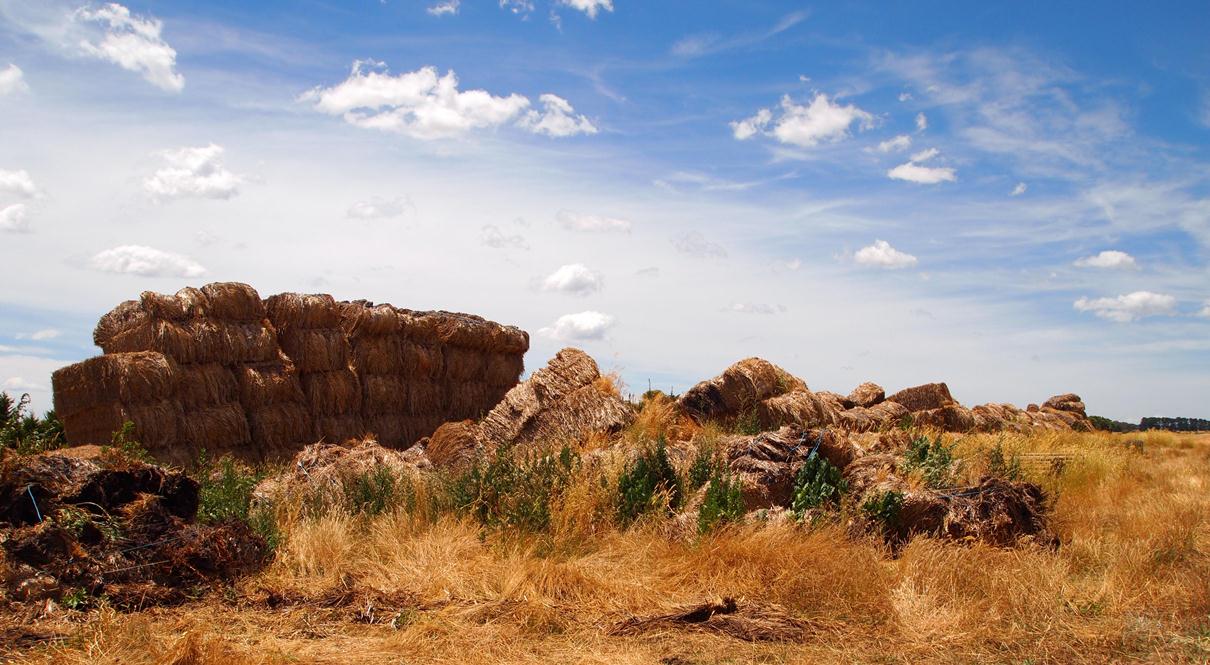 Enter the Great Wall of Hay. A huge structure of half fallen over, decomposing hay that had been stacked in someone’s paddock years ago and had become an interesting landmark between Clunes and Creswick. The bales looked perfect and we had spent the last 18 months eyeing them off as we drove past, thinking of the wonderful mulching value of such semi-decomposed vegetative material.