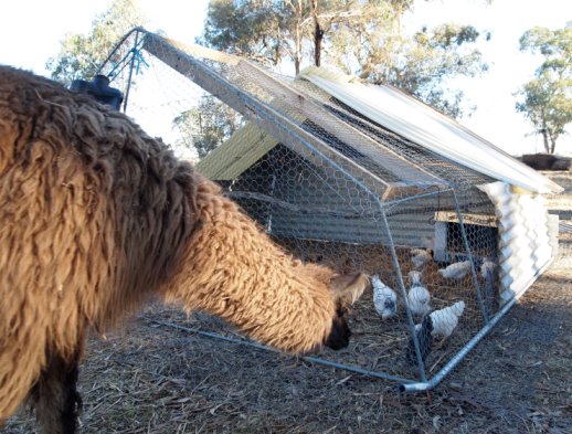 As Autumn rolls on, our baby chickens are growing rapidly. The youngsters that we raised as surrogate parents from the incubator are enjoying the A-frame chook house that Stace built – complete with a llama to watch over them (when she’s not distracted eating grass or daydreaming!)