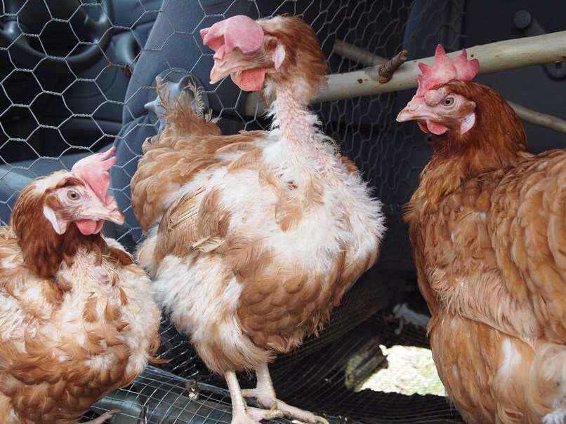 When we got them out of their boxes, I didn’t quite expect to see them in such a ragged state. A bunch of Misfits. Bare necks, skin rubbed raw from the bars, pale combs, strange growths on their faces, long curved nails, badly trimmed beaks and empty glazed expressions greeted us dully as we gently lifted them out of the car. If more people saw these chooks, there would be a LOT less cage egg consumption!